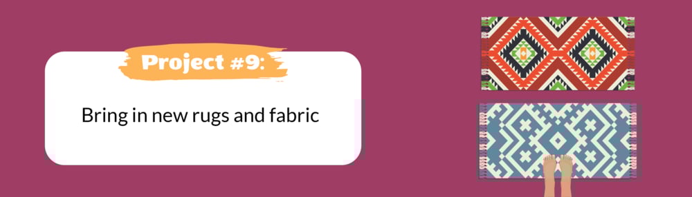 If you're looking to redefine and add warmth to a space, there’s no better and cheaper way to do it than adding rugs and fabric. And it isn’t only the colors and patterns of the rugs that can have an impact, but their placement as well. You don’t even need to use expensive carpets since you can layer them together. Go with rugs that have bold designs and striking hues or with colors that complement your home’s overall theme and style, then lay them diagonally on the floor for that added visual interest. You can also drape sheets of fabric on your lampshades or on the sofa for that subtle transformation.