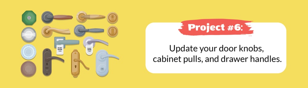 Give your cabinets, drawers, and doors a facelift by replacing their standard handles and pulls with hardware pieces that reflect your personal taste. It's an easy and affordable DIY project that can have a surprising effect on a room’s look, no matter how small these elements are. You can add trendy brass pulls for a modern look, or you can mix and match different metals and finishes to suit the room’s overall aesthetic. Visit a home decor store for new ideas and to check what material and color go well to your home style. Just make sure to measure the existing anchor holes and choose an alternative that’s the same width before doing this update.