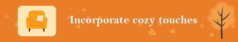 - Materials needed: Soft textiles (blankets, rugs, cushions, pillows, drapes, etc), wicker baskets, wood accents, books and magazines, pumpkins and other greenery